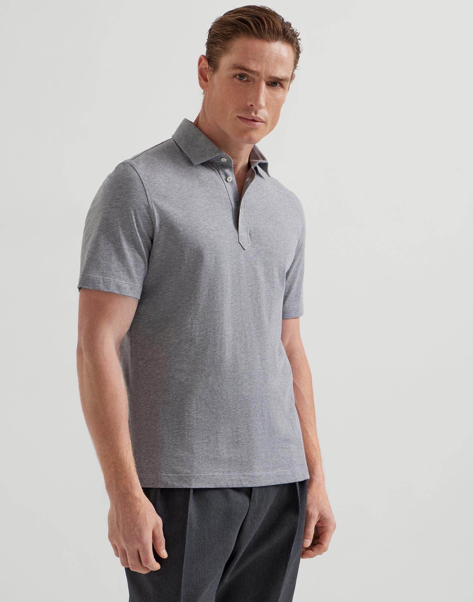 A classic year-round menswear piece, this polo is characterized by the shirt-style collar. The soft texture of pure cotton jersey complements the garment's timeless lines, while the fit offers regular proportions. MATERIALS Fine natural cotton fiber enriches the soft jersey, a lightweight fabric with a soft, fluid hand. DETAILS Shirt-style collar with button opening Regular fit 100% COTTON