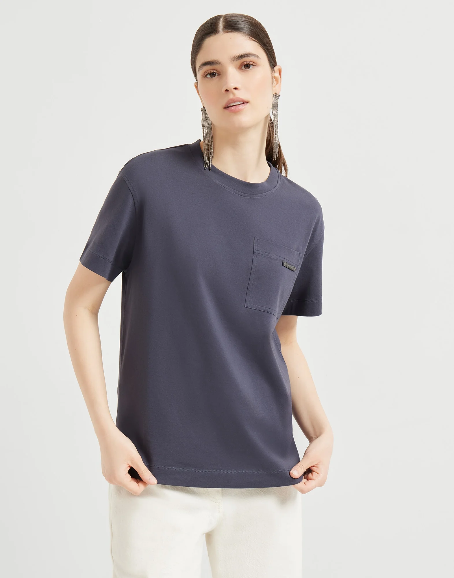 A sporty attitude and iconic elements define the style of this cotton jersey T-shirt. The style features a classic crew-neck and a regular fit. A precious monili embroidery enriches the chest pocket for a touch of feminine sparkle in true Brunello Cucinelli style. MATERIALS Research on the best materials elevates the sporty flavor of the pure cotton jersey inspired by the male wardrobe. The fabric is comfortable, lightweight and extremely pleasing to wear, perfect for every season. DETAILS Crew-neck Patch chest pocket Nickel-free monili decoration 100% COTTON