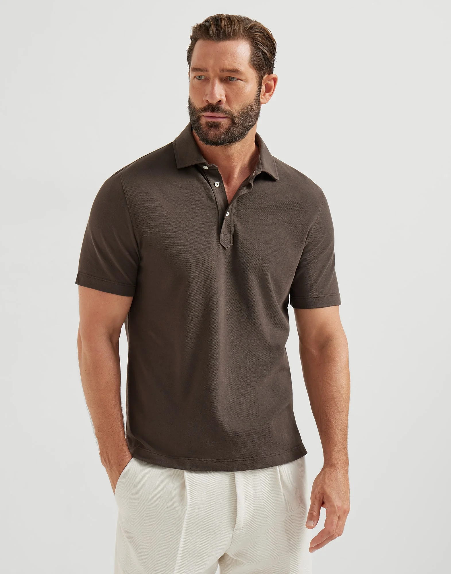 A classic year-round menswear piece, this cotton pique polo shirt is characterized by its shirt-style collar. The regular silhouette completes the garment’s design with comfortable lines. MATERIALS A classic menswear fabric, the lightweight pure cotton pique features the traditional honeycomb weave. DETAILS Shirt-style collar with button opening Sleeves with flat pressed hem Flat pressed hem 100% COTTON