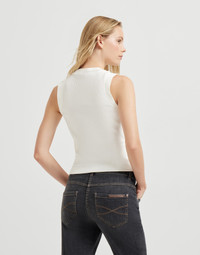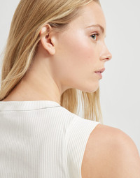 Essential, versatile and comfortable, this new cotton ribbed jersey top is a basic garment to create your own outfits. The ribbing gives the piece an elegant look, while the fine row of shiny monili behind the neck adds a delicate sparkling note and a feminine touch to this top. MATERIALS A small percentage of spandex perfects the lightweight and soft ribbed cotton jersey’s comfort. DETAILS Crew-neck Off-the-shoulder style Nickel-free monili decoration 100% COTTON