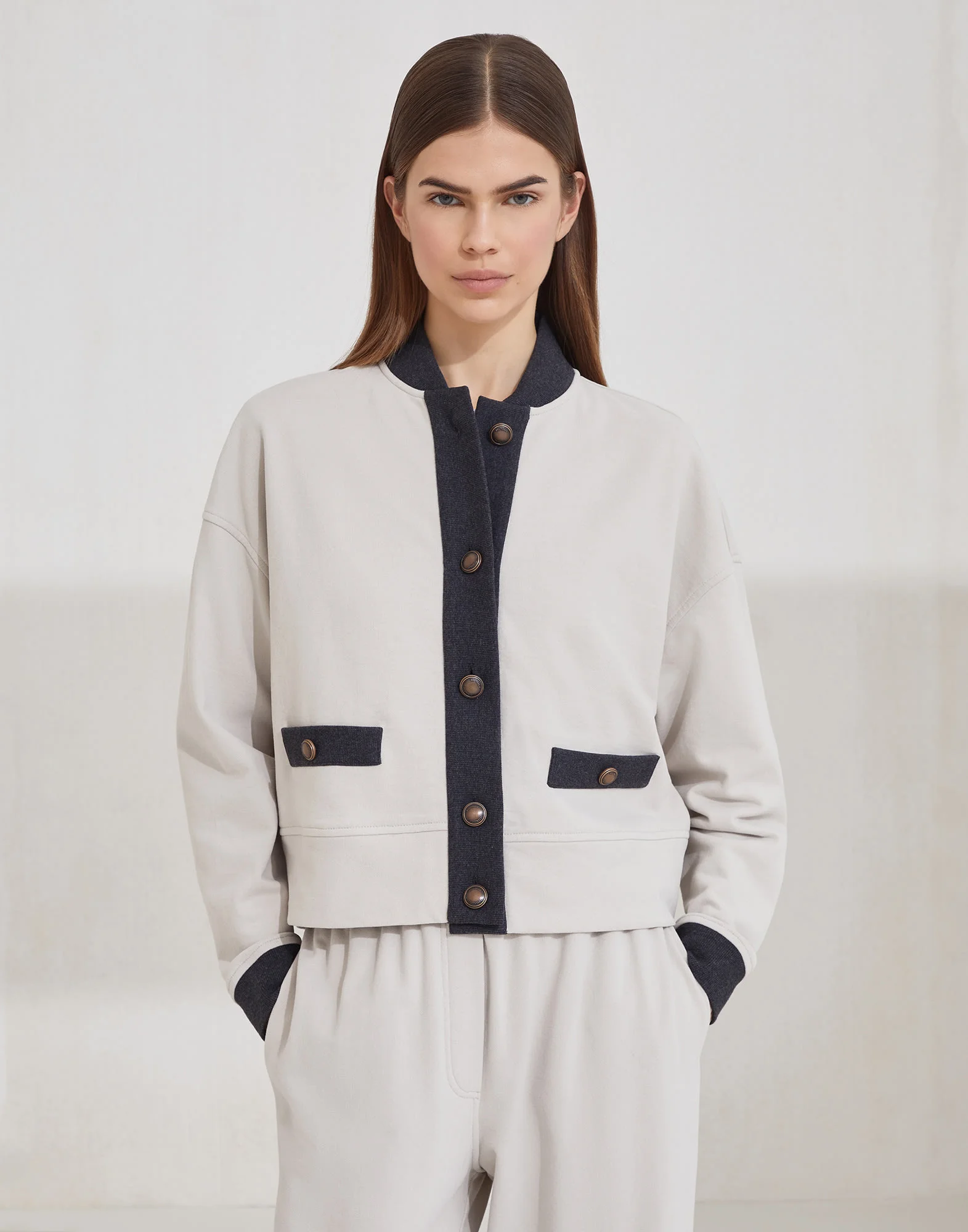 Cotton smooth French terry cardigan-style sweatshirt with metal buttons