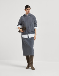 Cotton smooth French terry midi skirt with dazzling chalk stripe embroidery