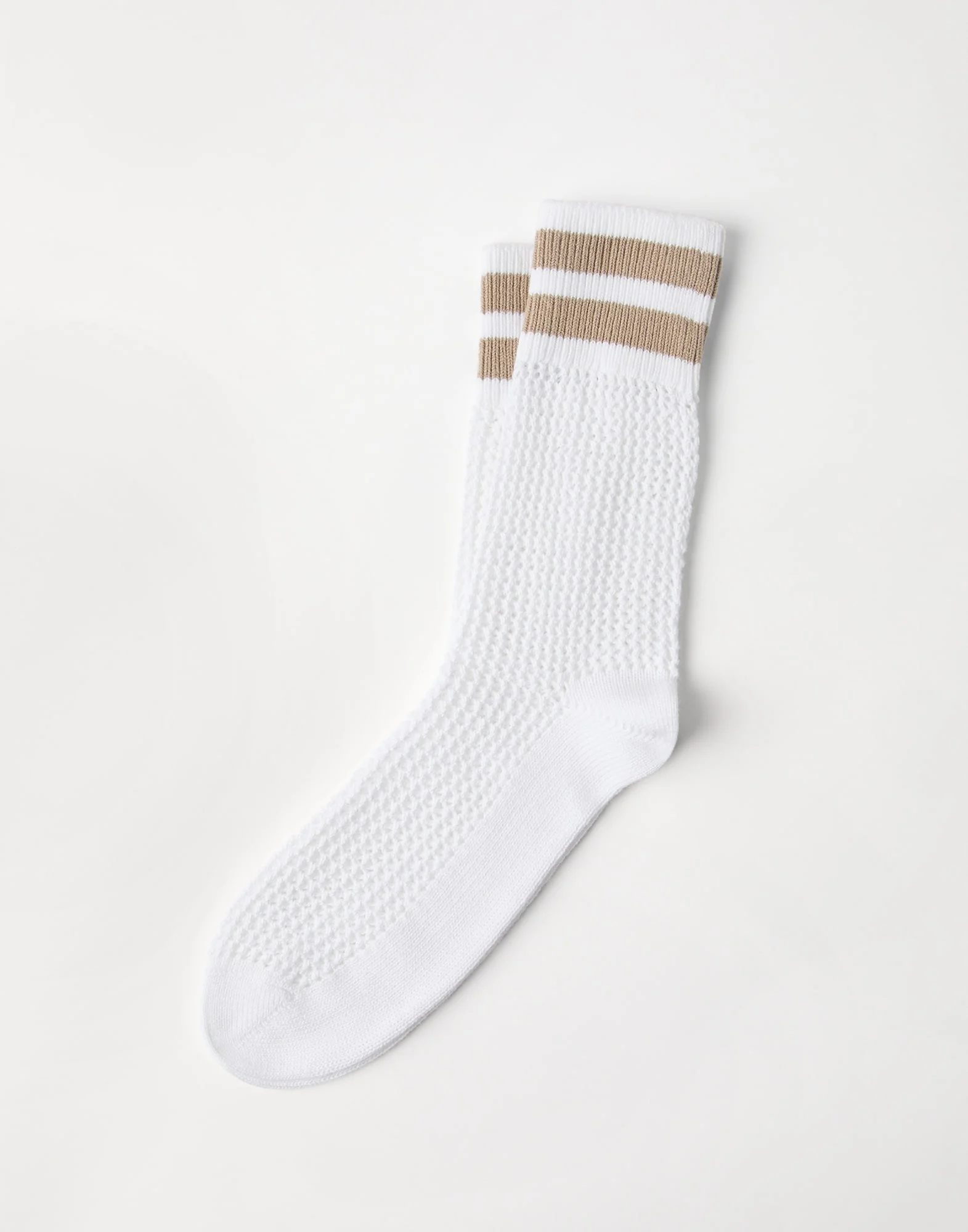 Classic workmanship enriches these cotton waffle stitch knit socks. The soft yarn is crafted with the full effect of a special knitting stitch, while the stripes add a sporty note. MATERIALS The crafting of the pure cotton yarn provides a light, cozy sensation when worn. DETAILS Calf length 100% COTTON