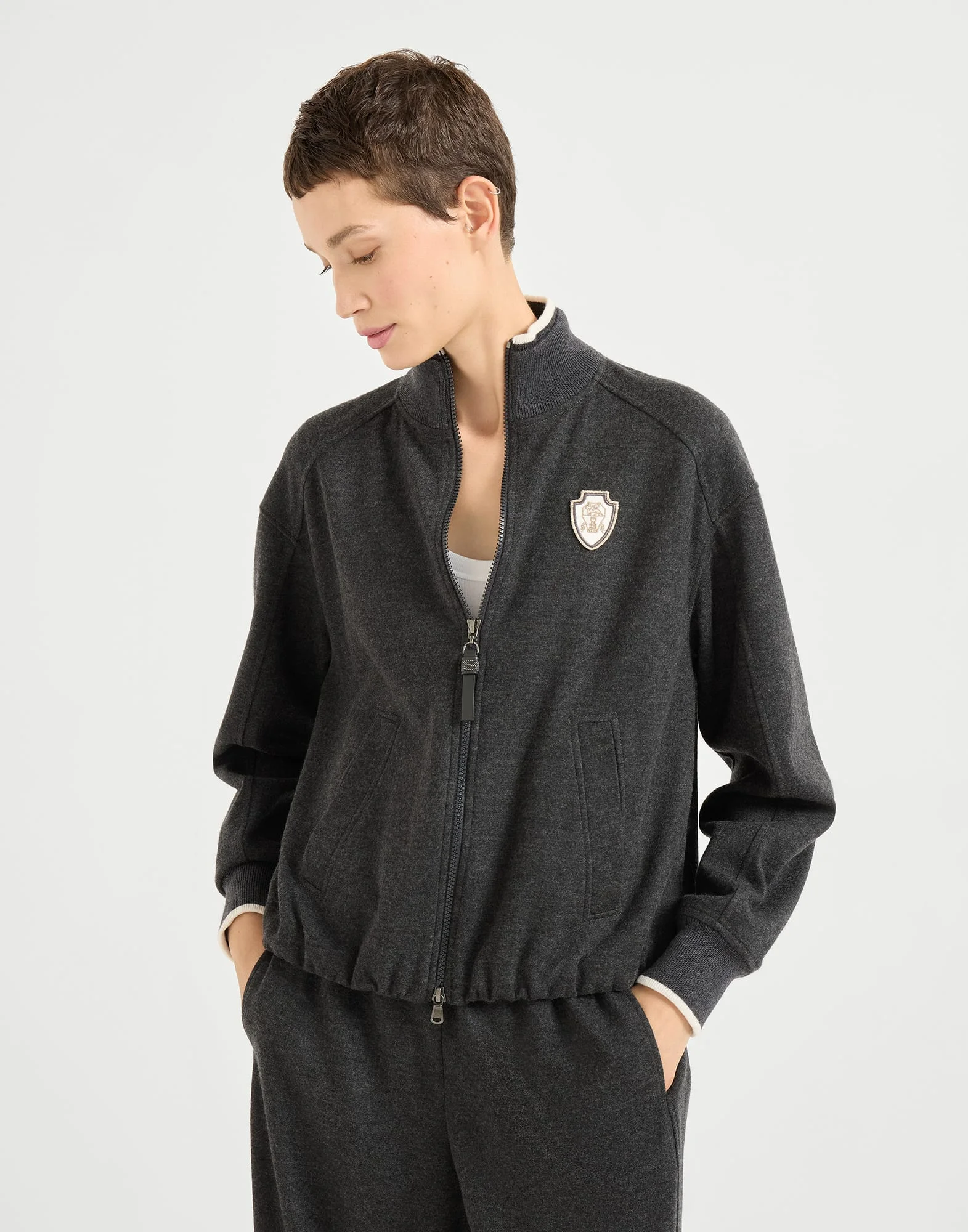 Double cashmere jersey sweatshirt with shiny zipper pull