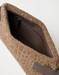 Essence pouch bag in suede with precious croc embroidery and bands
