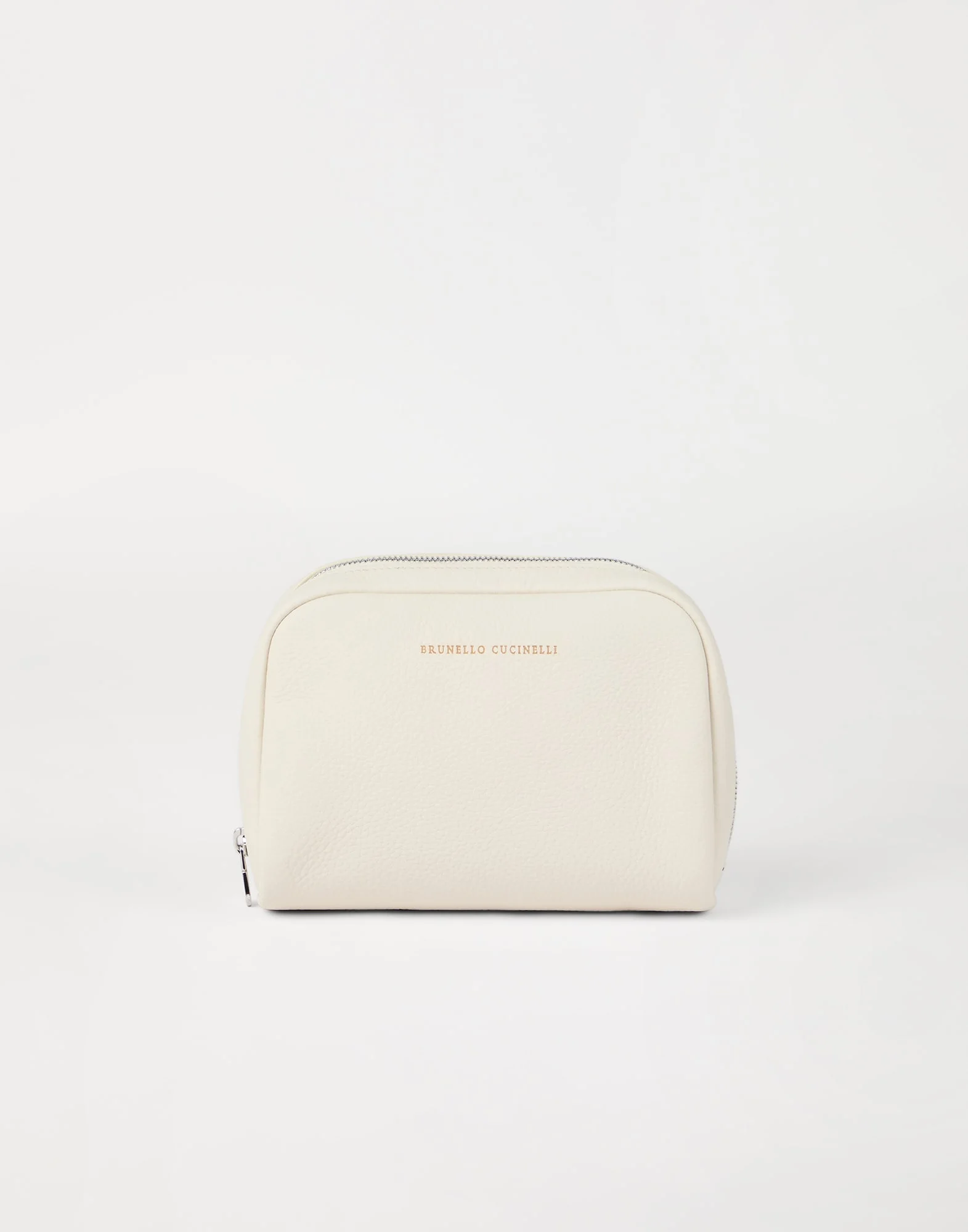 The careful selection of raw materials is combined with refined artisanal workmanship to create leather accessories characterized by essential lines and sophisticated style, such as this calfskin slim beauty case. The leather’s particular fine grain gives the texture softness, enhanced by the season’s delicate colors. The accessory is completed with functional details such as the zipper closure and the water-resistant fabric lining. MATERIALS The refined calfskin is the result of a careful selection of raw materials and a constant pursuit of quality. The characteristic fine grain gives the texture a distinctive softness, making it ideal for crafting accessories with an elegant look. DETAILS Zip closure Water-resistant fabric lining All metal parts are Nickel-free The accessory is approximately 16 cm (6.30") long, 13 cm (5.12") high, and 3 cm (1.18") wide REAL LEATHER