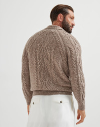 A careful selection of the rarest and finest fibers enhances the essential, casual silhouette of this pure cashmere knit polo shirt. Featuring a particular fineness and warmth, the flecked yarn is enriched with a distinctive mottled effect that brings to life the classic wide cable knitting, creating three-dimensional color effects. The fit offers regular, comfortable proportions through the chest and raglan sleeves. MATERIALS Noble cashmere fibers provide the yarn with warmth and lightness and enhance the season’s colors with the distinctive mottled effect of the flecked yarn. DETAILS Shirt-style collar with button opening Raglan sleeve Rib knit cuffs and bottom band Cable knit 100% CASHMERE