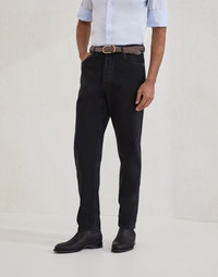 Garment-dyed iconic fit five-pocket trousers in denim