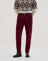 Garment-dyed leisure fit trousers in cotton corduroy with pleat