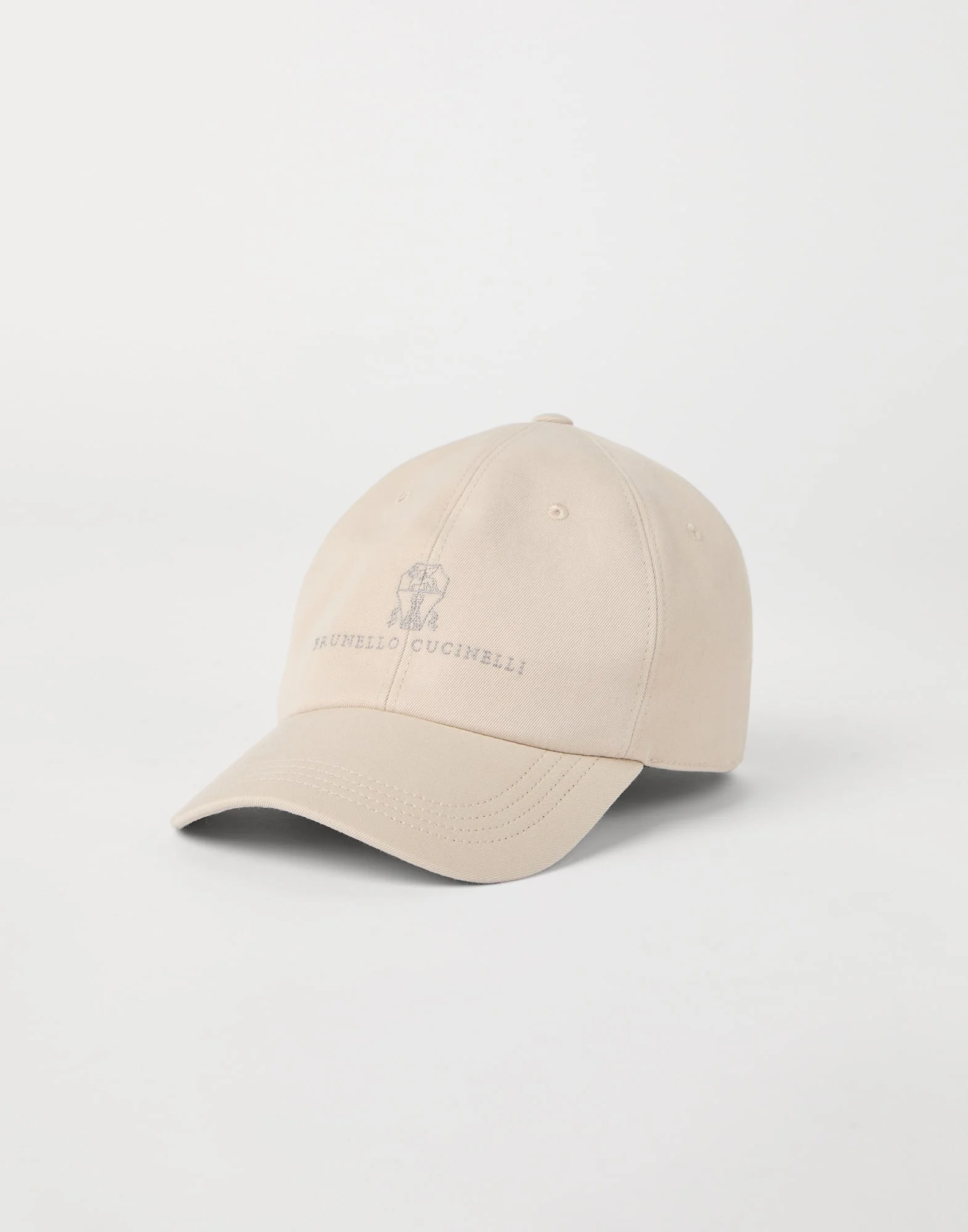 Refined Brunello Cucinelli materials enrich this garment-dyed cotton gabardine baseball cap, a must-have casual, sporty accessory of the male wardrobe. The particular craftsmanship uses twisted cotton threads that provide the design with freshness and comfort, completed by the Solomeo heraldic logo embroidered on the front. MATERIALS Pure cotton gabardine uses twisted threads that enhance the fabric’s compact, comfortable and fresh texture. Garment dyeing adds slight color shading that is visible in particular along the edges of the garment and seams. DETAILS Reinforced brim Adjustable strap with buckle 100% COTTON