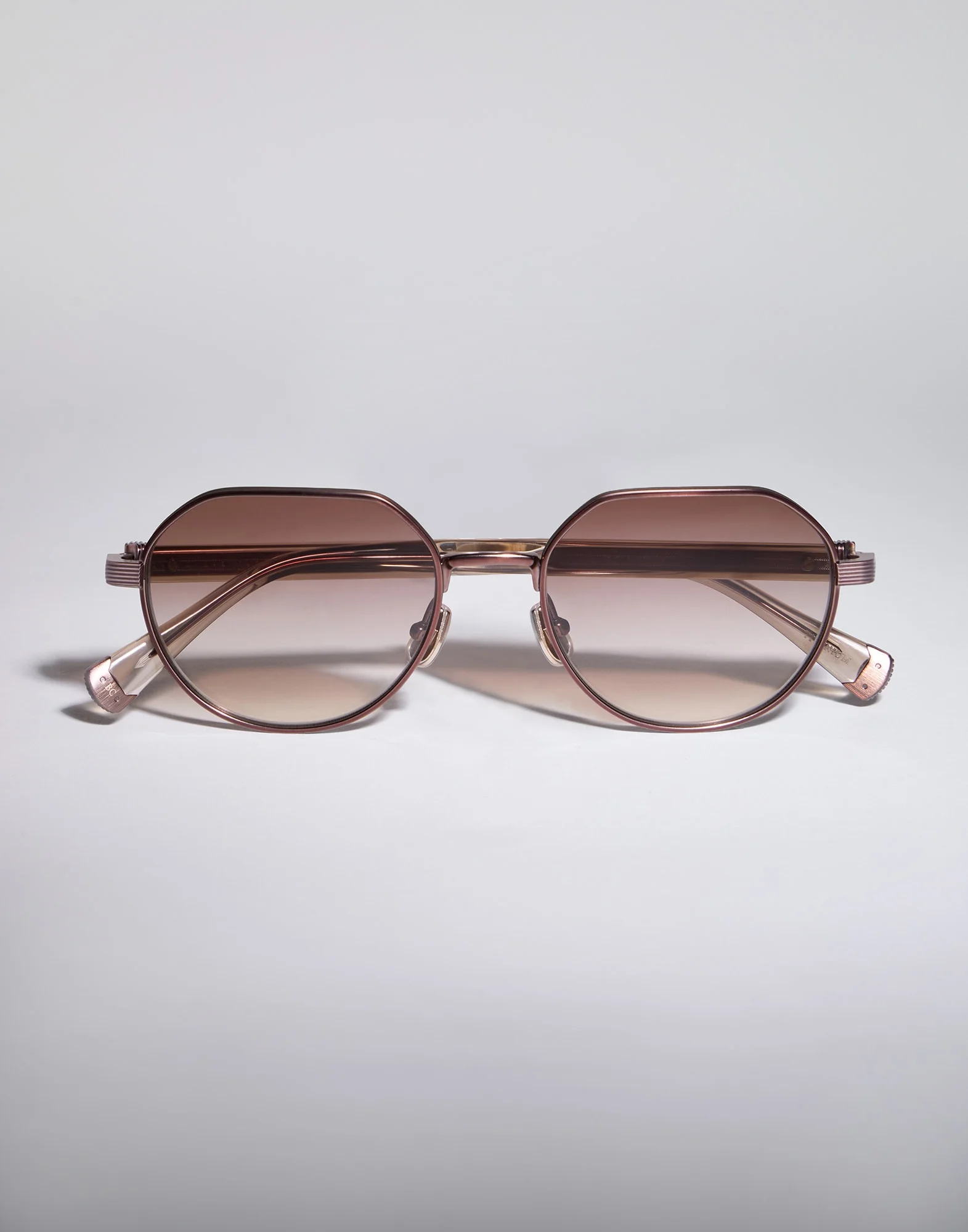 A sophisticated design, enriched with precious details that make a statement when worn, defines these Made in Japan titanium sunglasses. Geometric lines emerge with elegance thanks to handcrafted techniques of extraordinary precision, such as the sleek groove that runs along the rims, the initial part of the temples and tips. The hand-engraved filigree motif adorns the metal temple core, drawing inspiration from Brunello Cucinelli’s Ready-to-Wear collections, for a touch of sophisticated refinement. The frame is part of the "Intarsia Rays" line, where precious handcrafted techniques and three-dimensional details follow one another in a balanced and elegant ensemble. Inlaid elements catch the light, enhancing the sophisticated feel of each style. MATERIALS The frame is made from titanium, an extremely lightweight, flexible and strong material, with acetate inserts on the temples. The polyamide lenses are lightly tinted to make them particularly suited for the later hours of the day. In addition, the style comes with a second pair of clear lenses with blue light-blocking filter. DETAILS Frame shape: geometric Titanium frame Size: 52 mm (2.05"); Bridge: 18 mm (0.71"); Temple: 145 mm (5.71") Polyamide lenses, base 4 Includes a second pair of lenses with blue light-blocking filter RX-able style Adjustable nose pads Universal fit Handmade in Japan Exclusive packaging The frame's technical code (indicated on the inside of the temple) is: 0BC1007T TITANIUM, NYLON
