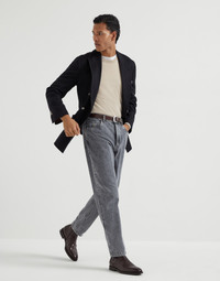 The shades of Grayscale denim enrich the timeless silhouette of these five-pocket trousers with a retro-inspired, sophisticated touch. The iconic fit features a slightly high-waisted cut, developing evenly down the leg. MATERIALS The refined color of the Greyscale denim stems from a traditional fabric production process. As a result, the original color will lighten slightly with daily use, acquiring sophisticated color shades on the grey scale. DETAILS Metal button closure Front pockets with watch pocket Back patch pockets Plain hem Iconic fit: the fit is characterized by slightly high-rise proportions with a regular design along the leg 100% COTTON