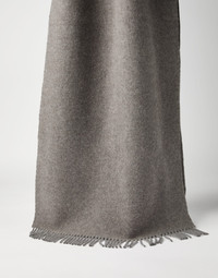 The excellence of refined fabrics enhances the essential style of this wool and cashmere knit scarf. Perfect for the winter, the precious yarn provides a comfortable feeling of softness. The fringe and hood complete the style with a casual touch. MATERIALS The combination of refined cashmere and wool fibers creates a very lightweight fabric with a very soft, compact hand. Designed for colder days, the style retains warmth and is very comfortable to wear. DETAILS Plain stitch Hem with fringe Scarf measures approx. 50 cm (19,69") x 240 cm (94,49") 59% WOOL, 41% CASHMERE