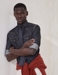 The sporty feel of lightweight cotton denim pairs perfectly with the western-inspired details of this shirt, such as the snaps, the pronounced yoke and the snap flap pockets. The easy fit is characterized by regular and pretty straight lines and is slightly shorter in length than other fits, which makes it ideal to wear over pants, for a casual style. MATERIALS The pure cotton denim is characterized by a balanced weight that makes this garment comfortable to wear, particularly in warmer weather. DETAILS Placket closure with snaps Spread collar Two patch chest pockets with flap and button Yoke Button cuffs Easy fit 100% COTTON