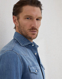 The sporty feel of lightweight denim enriches this western-inspired shirt, characterized by the snaps, pronounced yoke and button flap chest pockets. The easy fit is defined by its regular, rather straight lines and has a slightly shorter length than other fits, making it ideal to wear over trousers for a casual look. MATERIALS The pure cotton denim is characterized by a balanced weight that makes this garment comfortable to wear, particularly in warmer weather. DETAILS Placket closure with snaps Spread collar Yoke Two patch chest pockets with flap and button Cuffs have two mother of pearl buttons Easy fit 100% COTTON