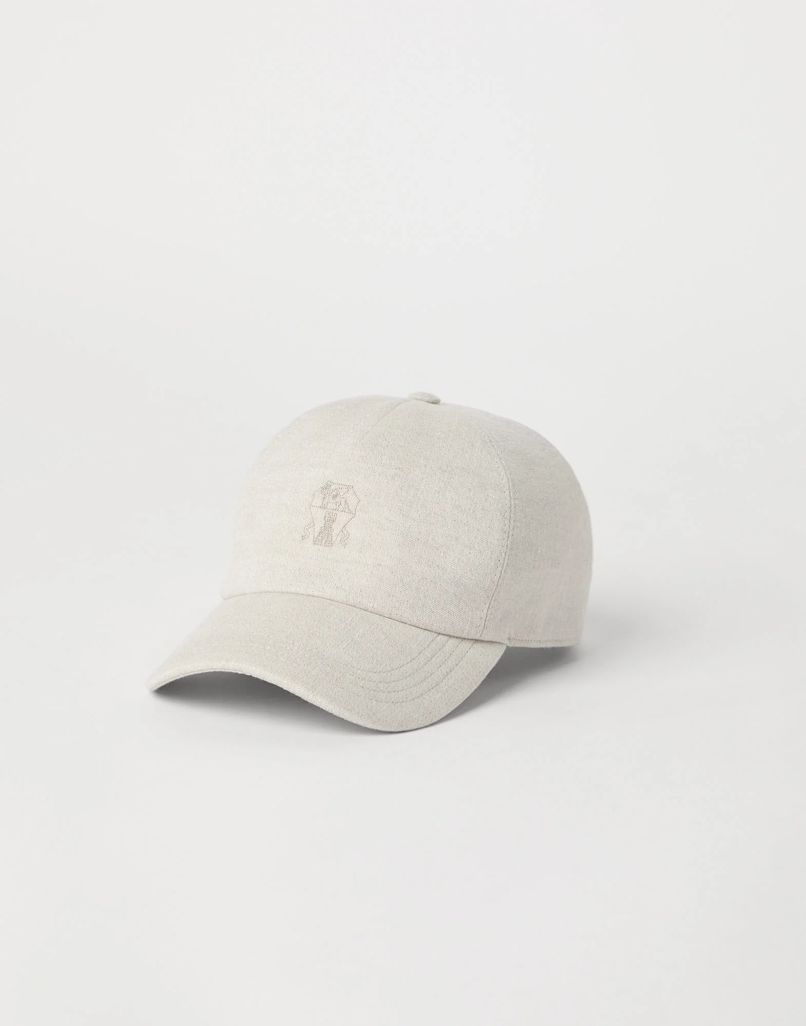 Summery materials and fine details elevate the sporty feel of this baseball cap. The rustic, dry texture of linen canvas is enriched with a special finish that adds a delicate, irregular lame effect to the surface of the accessory. The Solomeo heraldic coat of arms embroidered on the front complements the design. MATERIALS Pure linen canvas is a cool and crispy fabric characterized by a wrinkled and slightly slubbed texture. The addition of lame thread enhances the seasonal nuances. DETAILS Adjustable leather strap with buckle Reinforced brim Lined 97% LINEN, 2% POLYESTER, 1% NYLON