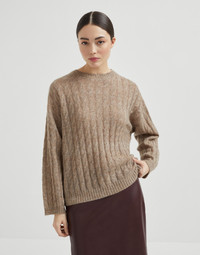 Mohair, cotton and wool dazzling cable hooded knit sweatshirt