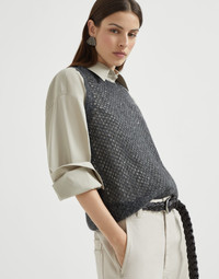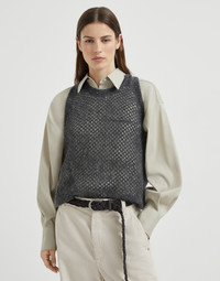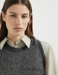 Mohair, cotton and wool dazzling mesh knit top