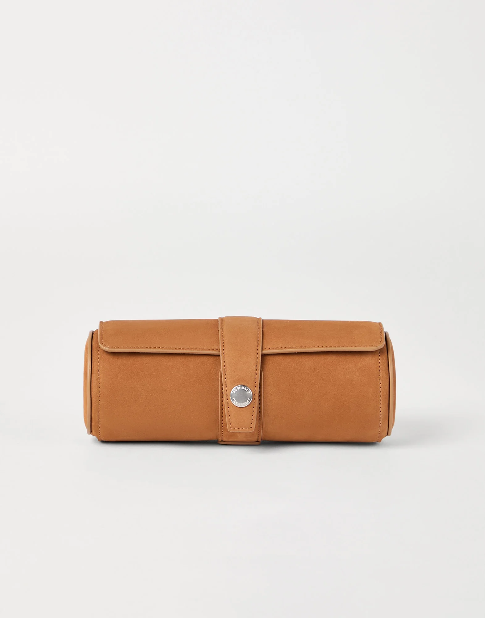 The constant pursuit of quality combines versatile design and casual, sporty inspiration, shaping the elegant style of this classic round nubuck watch box. The particular velvety texture enhances the season’s colors and the distinctive natural grain of this refined leather. Completed with a snap closure, the accessory features several lined compartments on the inside. MATERIALS Nubuck is a refined leather characterized by a very soft hand and a light natural grain. The finish enriches the surface with a slight velvety effect. DETAILS Snap closure Suede lining Removable suede-covered cylinder for watches All metal parts are Nickel-free The accessory measures approximately 21 cm (8.27") in length and 8 cm (3.15") in diameter REAL LEATHER