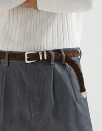 Reversed calfskin braided belt with tip