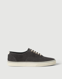 The tapered lines of the classic lace-up sneaker are enriched with refined materials and workmanship. The reversed calfskin is characterized by a soft, velvety appearance, delicately enhancing the season’s colors. The vulcanized rubber outsole, featuring a distinctive grey stripe, is entirely handcrafted by master artisans, ensuring absolute comfort and quality. MATERIALS Reversed calfskin is a leather produced in France that displays the velvety and slightly shimmering look of suede on the exterior, while the reverse side is characterized by a light natural grain. The result is lightweight, flexible and unlined footwear, providing ideal comfort when worn. DETAILS Flat cotton laces Leather lining Detachable insole Rubber outsole REAL LEATHER