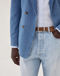 The velvety, slightly uneven texture of rough-out leather enriches this new belt with a retro touch. The buckle, loop and tip showcase a refined engraved pattern that enhances the metal’s slightly aged effect. MATERIALS The reversed calfskin leather is characterized by a sueded look with a slightly uneven texture that is soft to the touch. DETAILS Belt height approx. 2.5 cm (0,98") All metal parts are Nickel-free REAL LEATHER