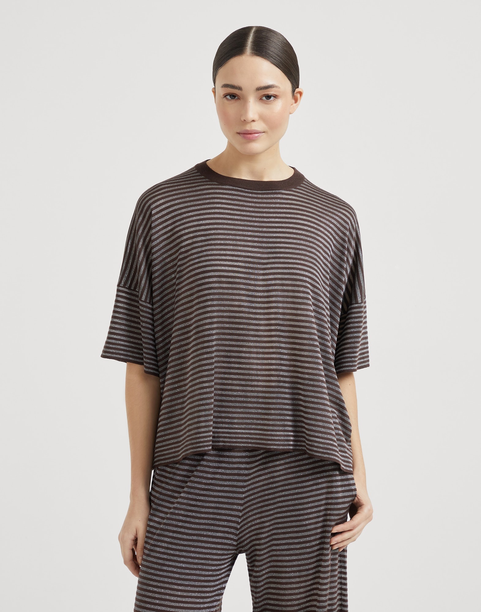 Sparkling stripes lightweight knit T-shirt in virgin wool and cashmere