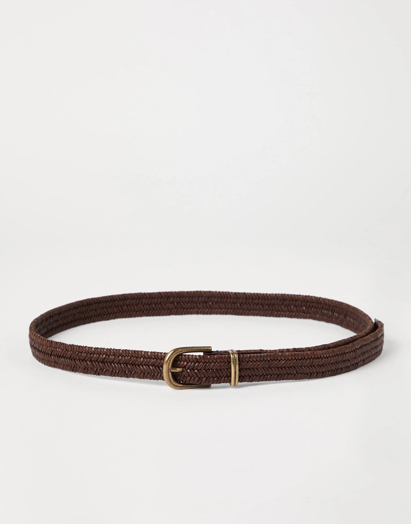 The crafting of refined woven leather enriches the contemporary style of this belt with a special three-dimensional texture. The contrasting buckle and loop give the accessory a shiny note. MATERIALS The woven design of the belt is made with refined calfskin leather, characterized by a rich, even grain. The small percentage of synthetic fiber makes the leather more elastic. DETAILS Belt height approx. 2.5 cm (0.98") All metal parts are Nickel-free 70% REAL LEATHER, 23% VISCOSE, 7% RUBBER