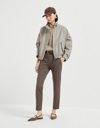 The excellence of Brunello Cucinelli materials elevates the essential, versatile style of these slim fit trousers. The cotton cover enriches the season’s colors with its characteristic diagonal twill and slightly raised texture, while the fabric’s stretch effect pairs perfectly with the slim fit, showcasing lines close to the leg. MATERIALS Cover is a twill fabric characterized by a slightly pronounced diagonal texture. The sporty feel of the fabric is balanced by the yarn dyeing, which disperses the colors of the season with an intense and sophisticated look. A very small percentage of spandex provides added comfort. DETAILS Zip closure with metal hook and backing button Front pockets Back welt pockets 97% COTTON, 3% ELASTANE