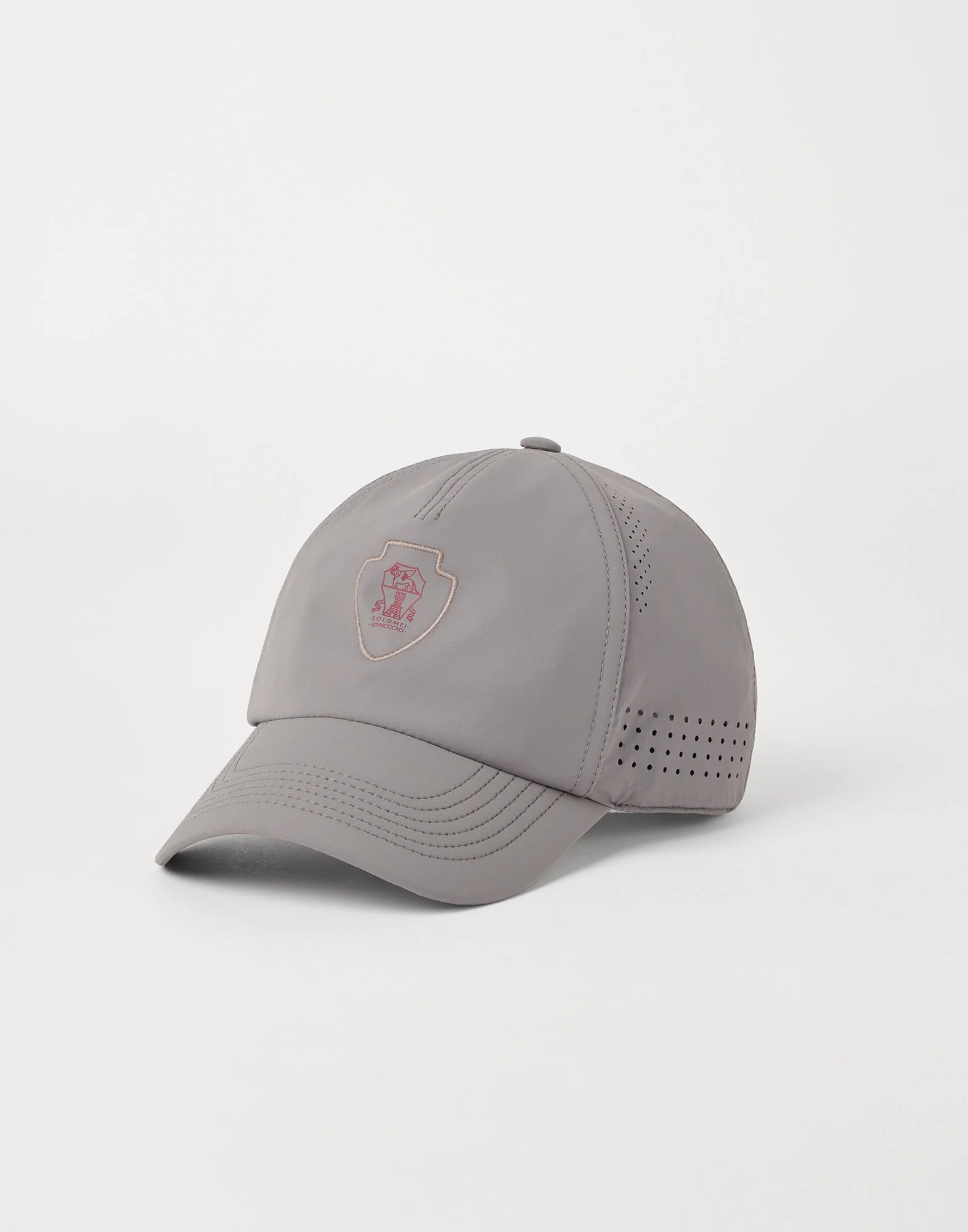 The innovation of Brunello Cucinelli materials enriches the essential, sporty style of this classic Baseball cap, a must-have casual accessory of the male wardrobe. The stretch nylon makes it lightweight and accentuates the season’s colors with its matte texture. An adjustable back strap and the heraldic logo complete the design. MATERIALS Lightweight and versatile, stretch nylon is defined by its fluid, powdery texture and its shimmering, matte appearance. The percentage of elastic fiber makes it particularly comfortable to wear. DETAILS Reinforced brim Adjustable strap with buckle All metal parts are Nickel-free 85% NYLON, 15% ELASTANE