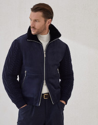 Suede shearling and cashmere knit bomber jacket with Thermore® padding