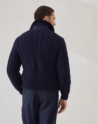 The yarns and workmanship of Brunello Cucinelli knitwear enhance the casual, sporty lines of this bomber jacket with an elegant detail. The suede shearling combines warm, cozy fleece with the light, velvety feel of the exterior, delicately balanced with the cashmere knit inserts on the sleeves and back. The Thermore® padding completes the fit of the garment, maintaining regular, versatile proportions. MATERIALS Manufacturing of the suede shearling gives the velvety surface a smooth hand with a slightly matte, texturized effect that brings to mind a retro feel. The interior showcases the classic soft, warm appearance of fleece. The Thermore® padding, a high-quality technical material, guarantees lightness without compromising proper protection. DETAILS Two-way zip closure Collar with rib knit insert Hand pockets with zipper Rib knit cuffs and bottom band Lined with shearling front panel Cable knit insert on sleeves and back 100% FUR