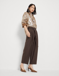 Refined silhouettes and precious materials come together in these new suede slingbacks. The very feminine design features a slightly tapered toe and a particular "almond" topline that elegantly hugs the foot. The shapely heel stands out for its curvature, which follows the natural shape of the foot’s heel, and is entirely covered with the iconic monili embroidery for an elegant sparkling note in true Brunello Cucinelli style. The rear elastic strap provides the fit with added comfort. MATERIALS The refined suede is a compact leather with a soft, velvety texture. The suede lining and the non-slip TPU rubber inserts on the heel and toe provide added comfort. DETAILS Rear elastic band Suede lining Leather sole Non-slip TPU rubber at heel and toe Nickel-free monili decoration 8 cm (3.15") heel REAL LEATHER