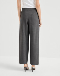 A sartorial attitude and casual details define the style of these tailored track trousers in tropical luxury wool. The refined fabric and pleats provide the relaxed design with a clean and elegant silhouette, creating an impeccable look. The pull-on fit and functional drawstring enhance the comfort. MATERIALS The lightweight fabric combines the virgin wool natural fiber with a percentage of synthetic to provide added comfort. DETAILS Zip closure with button and drawstring Vertical front pockets Double pleat Back patch pockets Plain hem 75% VIRGIN WOOL, 23% NYLON, 2% ELASTANE
