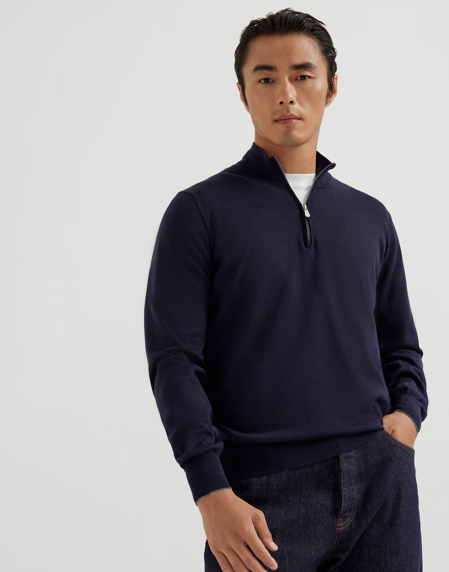 Virgin wool and cashmere lightweight sweater with half-zip