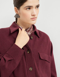 The excellence of Brunello Cucinelli yarns elevates the casual feel of this new virgin wool, cashmere and silk knit shirt. The style updates the classic elements of shirting in a very contemporary, feminine way, thanks to the large flap pockets on the front and a 4-button horn closure for an informal yet sophisticated touch. The fit offers relaxed proportions with dropped shoulders and slightly wide sleeves. MATERIALS The refined virgin wool, cashmere and silk yarn offers lightness and comfort when worn, without sacrificing the right amount of protection that is essential between seasons. DETAILS Horn button closure Shirt-style collar Drop shoulder Wide sleeve Cuffs with horn button Two patch chest pockets with flap Plain stitch 60% VIRGIN WOOL, 30% CASHMERE, 10% SILK