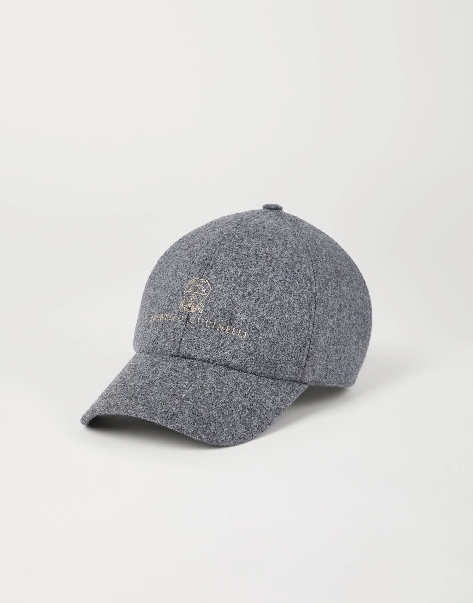 The quintessential sporty accessory, this Baseball cap is detailed in refined Brunello Cucinelli materials. The irregular look of virgin wool flannel highlights the embroidered Solomeo logo, while the cotton lining ensures comfort. The adjustable back strap completes the accessory. MATERIALS The slightly uneven effect of the nuance is spread throughout the texture of the wool flannel, a compact, lightweight fabric that expresses perfectly the qualities of the fine natural fiber. DETAILS Reinforced brim Adjustable strap with buckle Lined 100% VIRGIN WOOL