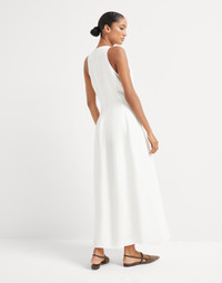 Refined materials and classic lines come together in this Fluid twill dress. Characterized by a subtle play of pleating that brings the structure of a corset to mind, the top is more fitted to the body, while the skirt has a light, fluid appearance, thanks to the texture of the viscose and linen-blend fabric. MATERIALS The combination of viscose and linen gives this twill a lightweight and extremely fluid appearance. The characteristics of the fabric are further highlighted by the nuanced color variations. DETAILS Crew-neck Concealed zip closure Silk-blend crepe lining Flared hem 72% VISCOSE, 28% LINEN