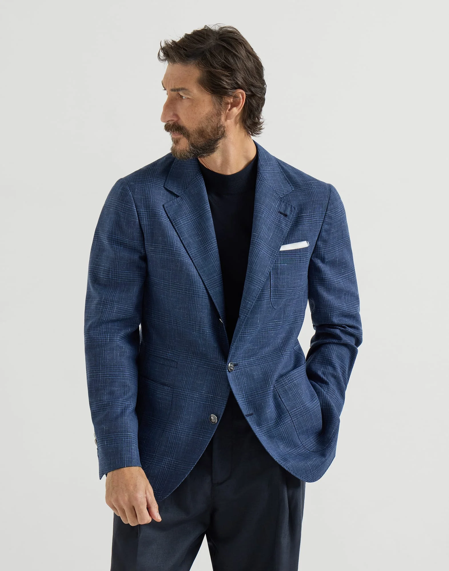 Wool, silk and linen Prince of Wales deconstructed blazer with patch pockets and metal buttons