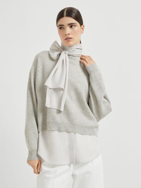 Cashmere English rib sweater with detachable pussybow blouse and monili