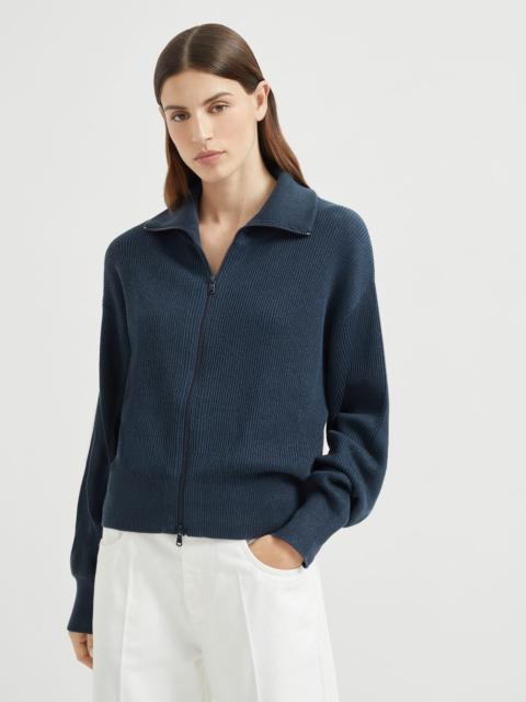 Cashmere and cotton French terry double cloth hooded sweatshirt with zipper