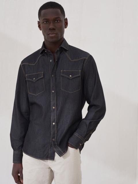 Garment-dyed slim fit trousers in comfort cotton lightweight denim
