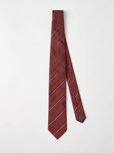 Silk, wool and cashmere flecked Prince of Wales flannel deconstructed blazer with large peak lapels