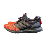 Game Of Thrones x adidas Ultra BOOST "House Targaryen" Size: US-11.5 / EU-46 / 29.5cm SKU: EE3709 Condition: Excellent, includes original box Design Features and Materials: Upper: Black Primeknit upper adorned with a Red and Orange gradient design on the toe area, symbolizing the fierce and fiery spirit of House Targaryen. Overlay: A sleek Black cage overlay paired with a matching heel counter enhances support and adds to the aesthetic. Back Tab Label: A striking Red back tab labeled “Fire and Blood,” the house motto, adding a narrative element.
