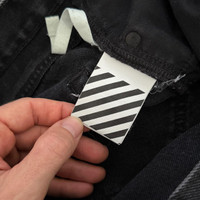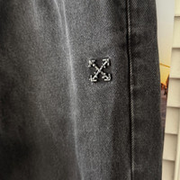 Brought to you by the iconic label, Off-White. The expertly crafted five pocket styled denim jeans are designed with a clean cut finish for its classic design. It features a tonal drawstring belt, branded buttoned closure, two welt pockets, completed with the brands signature diagonal arrow featured on the left pocket for its detailed finish. Fabric: 100% Cotton Lining: 65% Polyester, 35% Cotton Product Code: OMYA011E19E54045 Made in Italy Condition: Used The jeans generally in excellent condition, just one issue: zip are damaged, check the photo