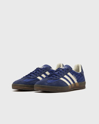 The adidas Gazelle indoor shoes were initially introduced as an alternative for indoor training and have long since become absolute icons. In this version, the pinstripe graphic on the satin upper is reminiscent of classic soccer jerseys. The natural rubber outsole with a darkened color guarantees traction and subtly alludes to the vintage design. The characteristic 3-Stripes on the side and the detail in the heel area round off the look with traditional elements. - Lace-up fastening - Leather and synthetic upper - Synthetic and textile lining - Rubber outsole Article number: JS1410 Gender: men,women Color: VICBLU/NINDIG/CREWHT Material: 30% Rubber, 70% Synthetic/Textile