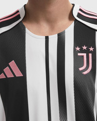 The adidas Juventus Turin home jersey comes with the club's famous stripes and an embroidered club logo in timeless pink. The soft interlock material and moisture-absorbing AEROREADY technology guarantee a pleasantly dry feel. - Slim fit - AEROREADY - Embroidered Juventus Turin club logo This item is partly made of certified, recycled and sustainable materials, reducing the global amount of waste and conserving primary raw materials. Discover a wide range of sustainable items now at BSTN! Article Number: JJ4320 Gender: Men Color: white/black Material: 100% Polyester