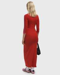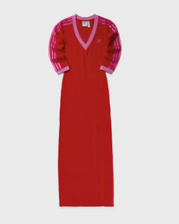 Make a style statement without sacrificing comfort with the adidas Adicolor Classics 3-Stripes Maxi Dress. The soft single jersey cotton blend fabric ensures effortless comfort in a dress that hugs the body. The V-neck and 3-Stripes on the sleeves create a sporty look with a typical adidas vibe. - Slim fit - Ribbed V-neck - Side slits This item is partly made of certified, recycled and sustainable materials, reducing the global amount of waste and conserving primary raw materials. Discover a wide range of sustainable items now at BSTN! Article Number: JW3668 Gender: Women Color: BETSCA/SELUFU Material: 93% Cotton, 7% Spandex/elastane
