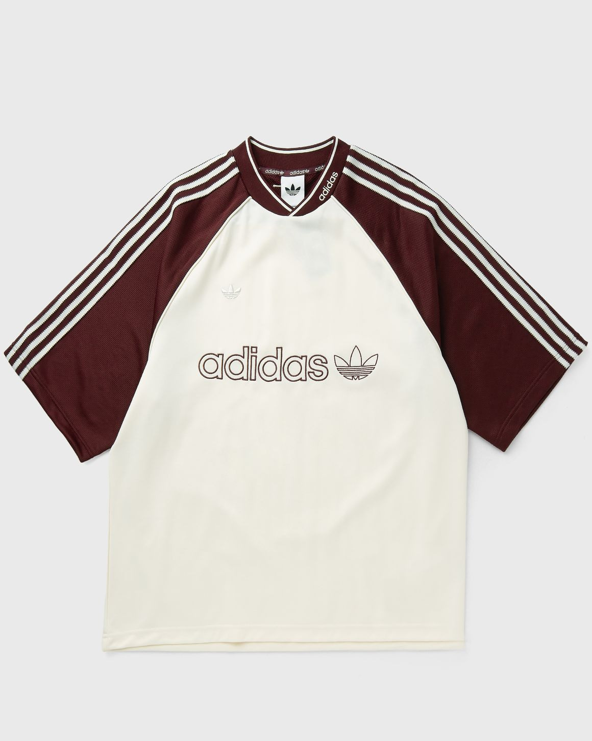 The soft and stretchy pique material of the adidas Premium Jersey follows your every move and ensures optimum comfort. Classic adidas details - such as the 3-Stripes and Trefoil logo - round off the design with an authentic vibe. - Oversize fit - 3-Stripes - Embroidered logo details This item is partly made of certified, recycled and sustainable materials, reducing the global amount of waste and conserving primary raw materials. Discover a wide range of sustainable items now at BSTN! Article Number: JV7600 Gender: Men Color: CREWHT Material: 52% Cotton, 48% Polyester