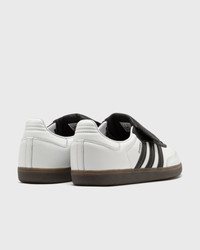 A nod to the label's '50s soccer archives, this version of the adidas Sambas features a fold-over tongue and eyelet detailing. The shoe is crafted from premium full-grain leather, with a signature T-toe and a rubber outsole. - Lace-up closure - Leather upper - Leather lining - Rubber outsole Article number: JI3199 Gender: men,women Color: FTWWHT/CBLACK/GUM5 Material: Upper material: 100% Synthetic/Textile